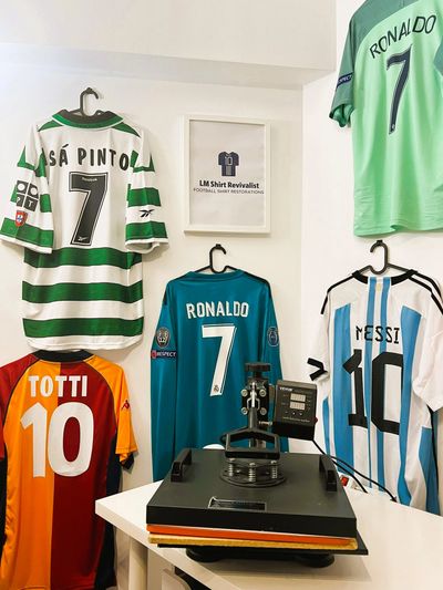 We restore name sets, numbers, badges, patches, vinyl, and colour.